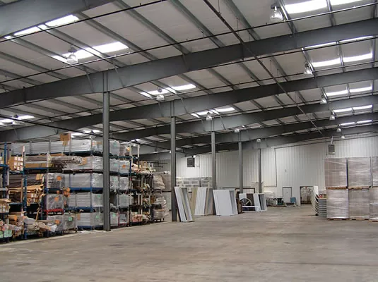 내부 마감 및 시스템 :창고 내부는 바닥재, 조명, 환기 및 화재 방지 시스템을 포함한 특정 요구 사항에 따라 완료됩니다. 스토리지 랙 및 메 자닌과 같은 특수 장비는 운영 효율성을 최적화하기 위해 설치 될 수도 있습니다.